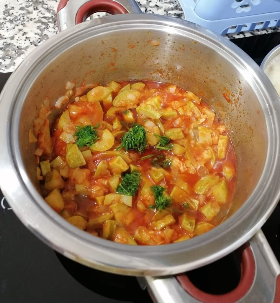 Salça kavrulduktan sonra küp küp doğradığımız kabağı ekiyoruz tuzu da ekleyip karıştırıyoruz kısık ateşte pişirmeye bırakıyoruz taze kabak 40-45 dk içinde pişecektir. Piştikten sonra üzerine doğradığımız dereotunu ekliyoruz karıştırıyoruz. Şimdiden kolay gelsin. Afiyet olsun.